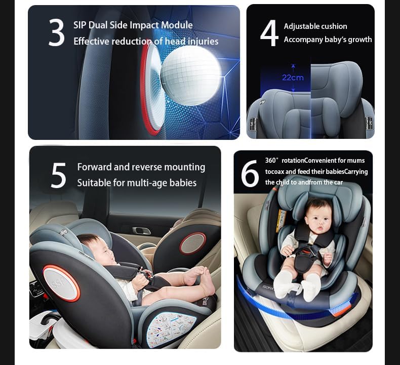 Utilisé lors de longs trajets, ce siège auto rotatif à 360° offre une installation rapide et un ajustement précis. La sécurité avancée assure une protection maximale, tandis que le confort ergonomique garantit un maintien parfait de l'enfant. Un choix impeccable pour la tranquillité d'esprit.